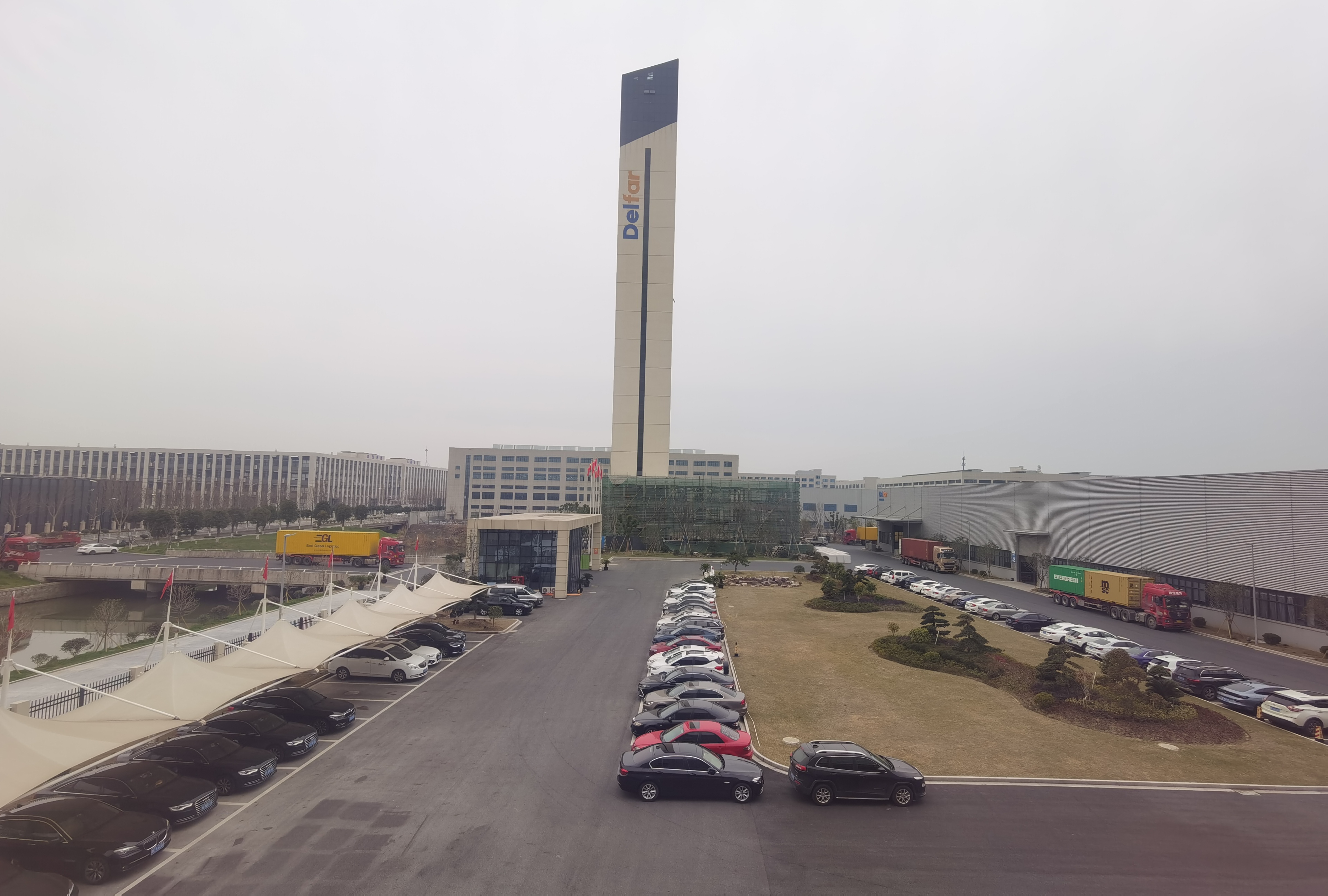 On February 28th, 2023, Delfar Elevator Co., Ltd. delivered the goods as scheduled. Many containers come to factory for loading as you can see in the photo.